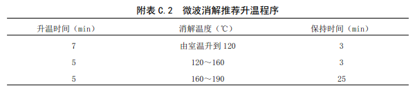 C.3.1:固體廢物種類較多,基體差異較大,在消解固體廢物時(shí)各種酸的用量、消解溫度和保持時(shí)間可視消解情況酌情增減。