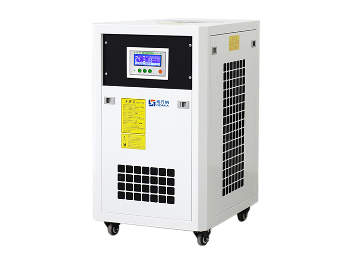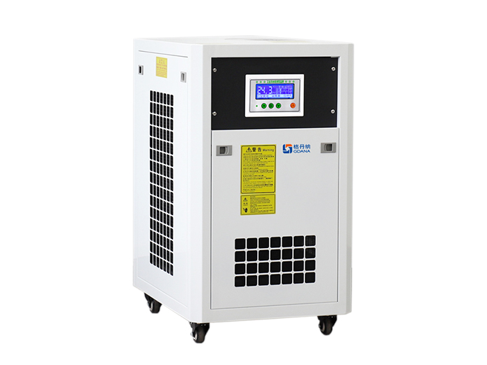 冷水機(jī)制冷系統(tǒng)將水箱內(nèi)的水冷卻,而后機(jī)器內(nèi)部的水泵把低溫的水注入需要冷卻的設(shè)備內(nèi)。水帶走機(jī)器內(nèi)部的熱量,變成高溫的水后回流到水箱進(jìn)行降溫,如此循環(huán)交換冷卻,起到為設(shè)備冷卻的作用。