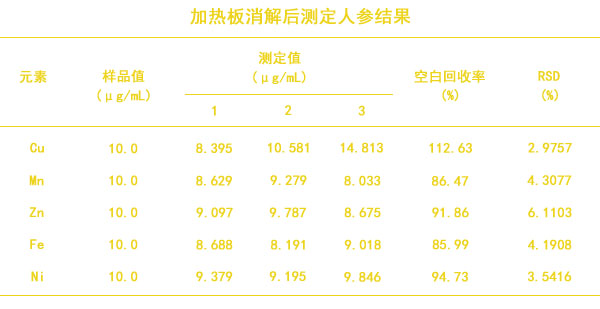 實(shí)驗(yàn)陶瓷加熱板消解后測定人參結(jié)果