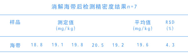 消解海帶后檢測精密度結(jié)果